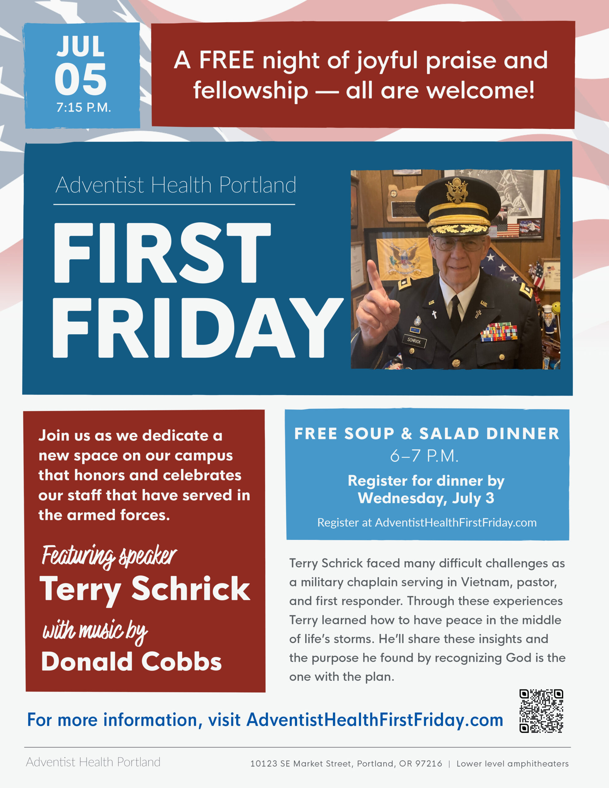 Join us as we dedicate a new space on our campus that honors and celebrates our staff who have served in the armed forces. Adventist Health Portland | Lower Level Amphitheaters